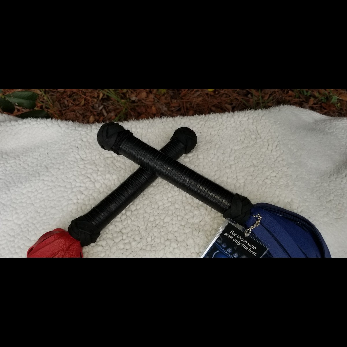 • To clean a quality leather toy,   Use a damp not wet Clorox wipe.  Make only 2-3 passes over the tip end on the flogger or whip. More will cause discolored and damage to the leather.