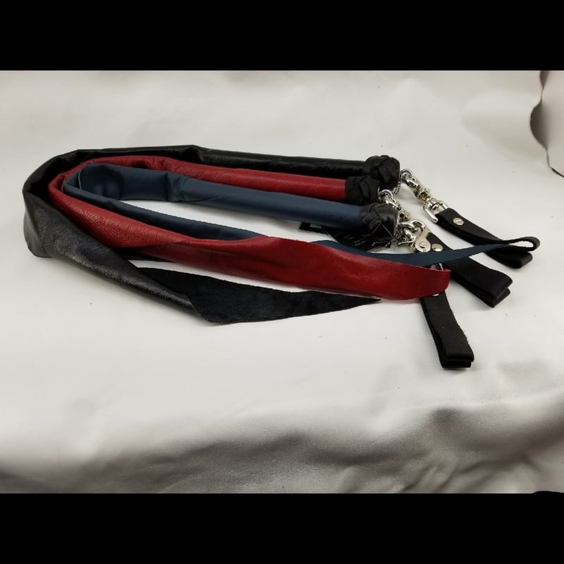 These Mini Dragontails have the black leather loops for your fingers. Each has two loops for two fingers on each mini tail. Buy a matching pair to enhance your play time. 4 week turn around time from time of order to delivery, each piece is custom made per order.