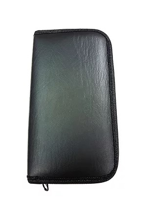 This set includes a soft pouch with an elastic holder for each pinwheel head and the handle. All parts are chrome plated except the stainless steel pins.